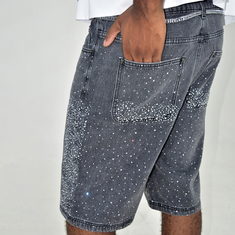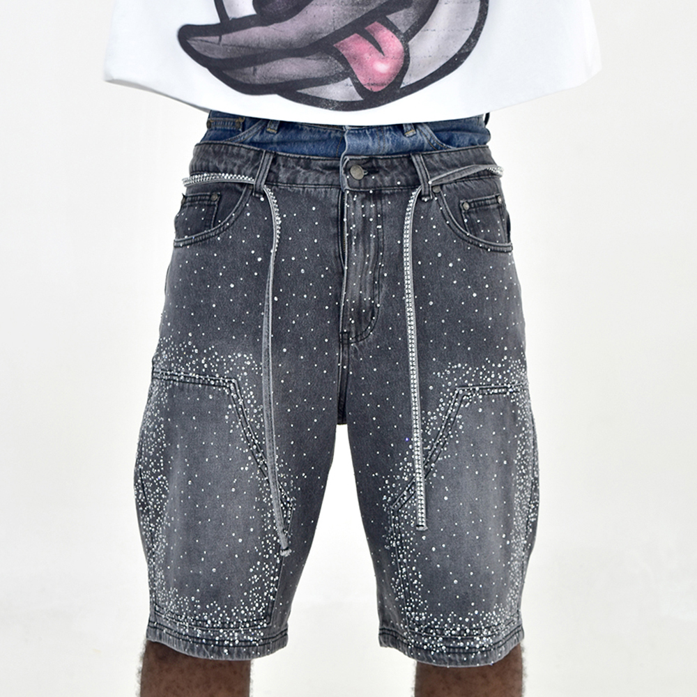 Yingling Clothing Custom Denim Shorts Rhinestone Double Waistband