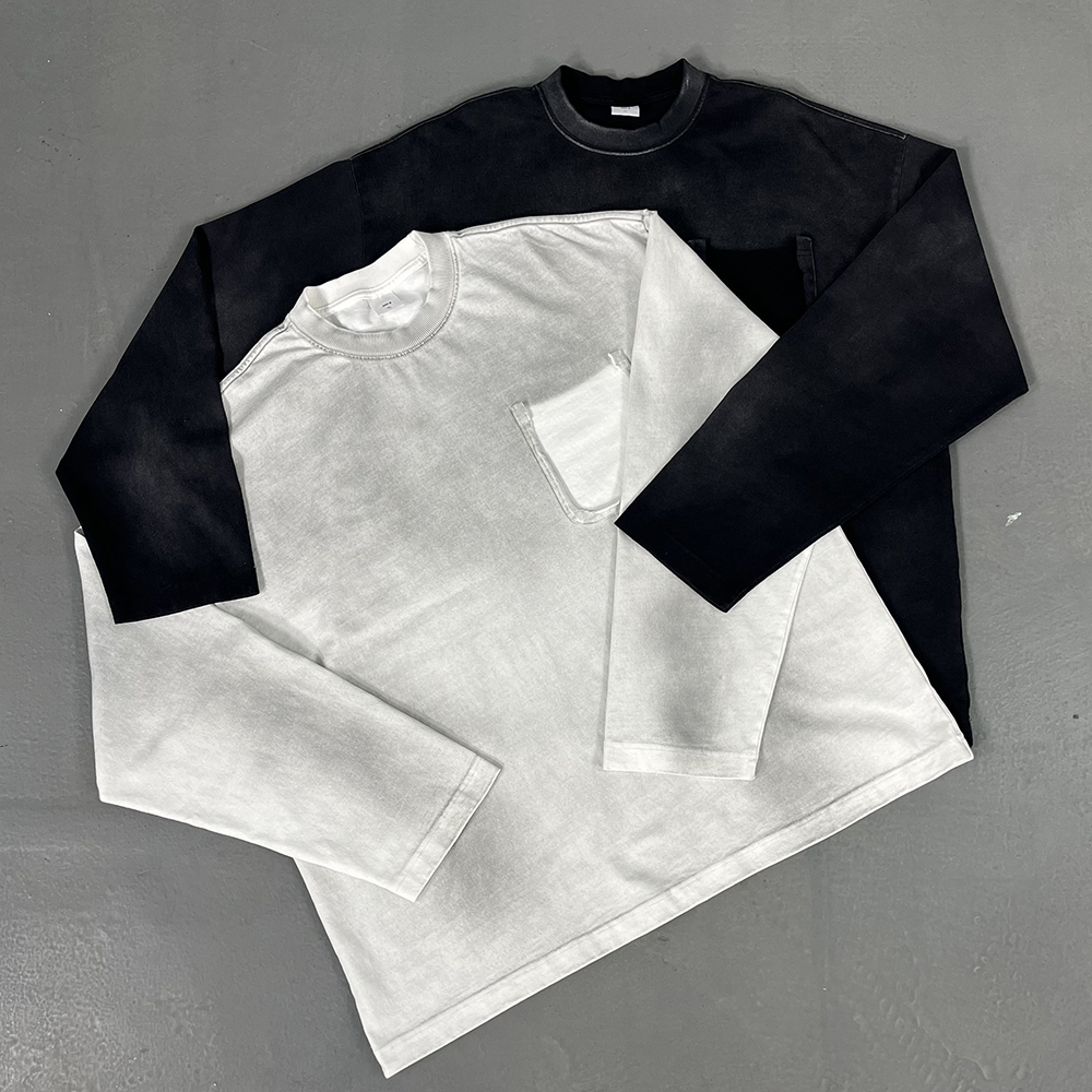 Yingling Tshirt Wasteland Style Distressed Sun Faded Cotton Long Sleeve T-shirtC25